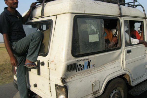 Três horas até à fronteira. Sentados à frente, em banco estranhamente virado para o motorista. Ao lado de uma sorridente criança hindu, vamos acompanhando o país rural. Continua a não haver sinais de progresso. As fotografias são as mesmas de há décadas.